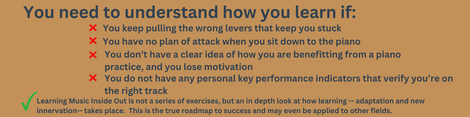 ➔ invest in themselves to learn to play piano but because they don't UNDERSTAND THEIR LEARNING PROCESS their ability doesn't grow