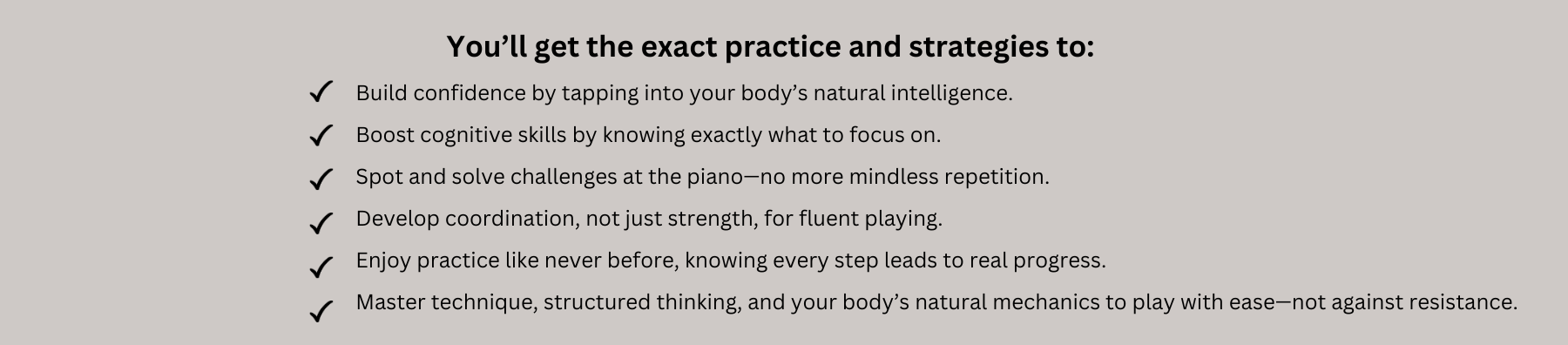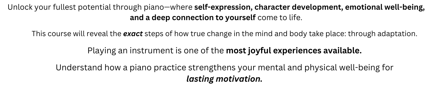 ➔ You will experience lasting motivation when you understand the mind and body benefits of a piano practice.