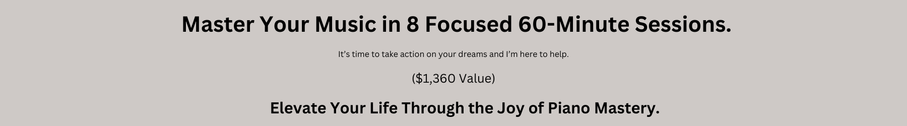 If you're feeling stuck, I have the missing pieces to help you make real progress at the piano. I'm 100% confident in this training—but your success depends on your commitment. When you put in the effort, you'll see the results. Music has the power to transform your life, and I want to help you experience that. Invest in yourself, take action, and let's make your piano goals a reality!
