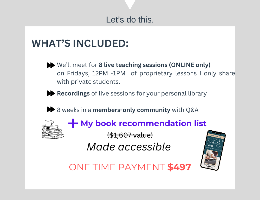 When does the course start and finish?  The course is every Friday from 12PM-1PM and starts Friday, March 14, 2025, runs for 8 consecutive weeks until May 2, 2025.  Live recordings will be posted in a member-only area within 24 hours of the class. While it is encouraged to attend every live session, you won't miss out if your schedule doesn't allow.  You may review sessions as many times as you need.  To ensure you are concepts are clear, you will be part of a private community forum for 8 weeks with direct feedback from me.